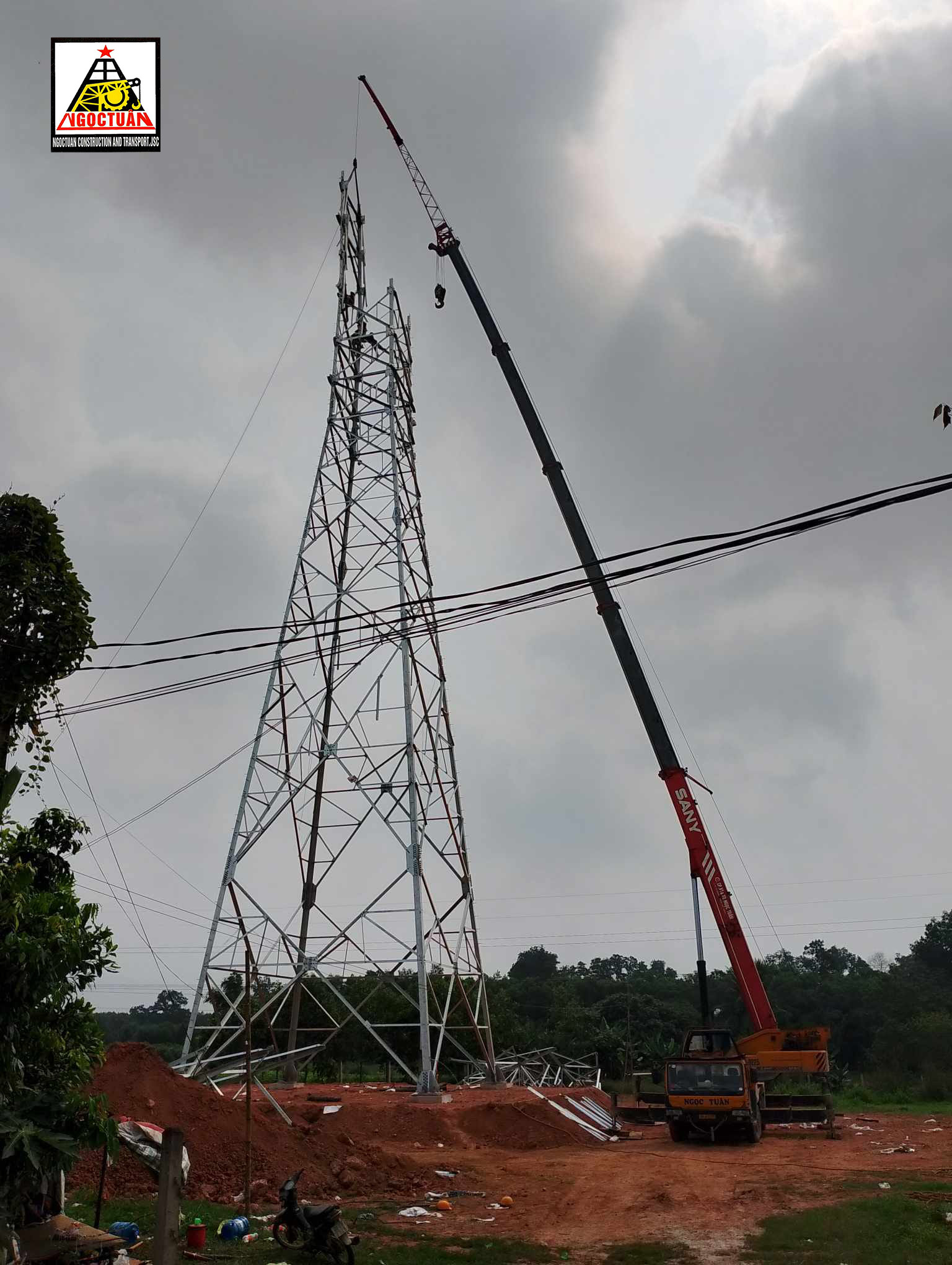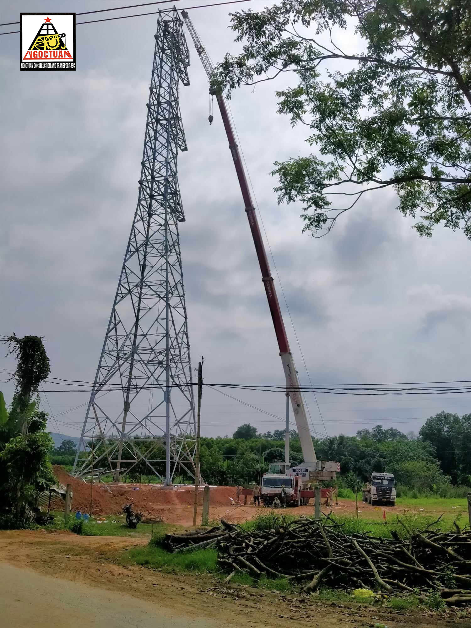 - Dự án lắp đặt cột điện đường dây 110kV: Đây là một trong những dự án hạ tầng điện lực quan trọng, yêu cầu cao về kỹ thuật cũng như sự chính xác trong quá trình lắp đặt. Ngọc Tuân đã cung cấp hệ thống xe cẩu bánh lốp giúp quá trình nâng hạ và lắp đặt cột điện diễn ra an toàn, hiệu quả.